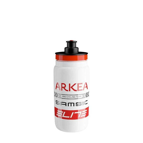 Le bidon ELITE Fly Team Arkea Samsic (550 ml) est tout simplement le plus léger proposé par le fabricant italien, qui équipe les équipes professionnelles du World Tour. Il est identique au modÚle utilisé par les coureurs du Team Arkea Samsic comme Nairo Quintana.