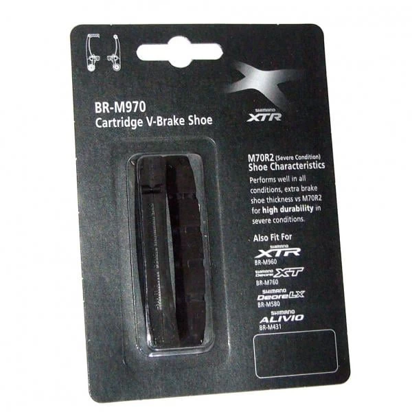 La paire de patins à cartouches SHIMANO XTR est compatible avec les gammes de freins XTR, XT, Deore LX et Alivio.