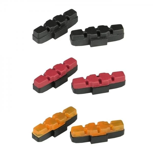 Les couleurs noir et rouge sont spécifiques aux jantes aluminium, tandis que le modèle orange a été développé pour les jantes céramiques.