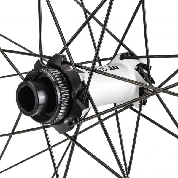 Grâce aux écrous DT Pro Lock, la fiabilité est accrue, tandis qu’au niveau des têtes de rayons, le système Pro Head renforce aussi l’ensemble en équilibrant les contraintes entre les rayons et la jante. De plus, es rayons straightpull favorisent aussi la rigidité et la réactivité de la roue.