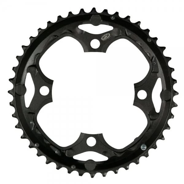 C’est un plateau extérieur, et il sera compatible avec les cassettes 9 vitesses ainsi que les pédalier 3 plateaux (pédalier à 4 branches, avec un entraxe de 104 mm).