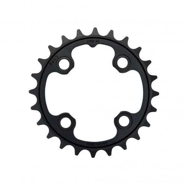 Destiné aux pédaliers à 4 branches avec fixation en 64 mm des systèmes 9 et 10 vitesses, ce plateau intérieur en aluminium MTB V1 signé TRUVATIV est ici proposé en 24 dents.