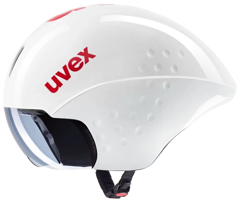 The helmetâs shape covers the shoulders perfectly, so air flows over the back of the head and body with little turbulence. In wind tunnel tests uvex race 8 demonstrates significant reductions in power and time. The higher the speed, the more watts saved. Tests with uvex athletes measured savings in wind resistance, in the total system, of up to 4.2 %, compared to the previous model.